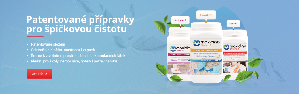 Seznamte se s produkty Maxidina – vodou rozpustné, ekologicky šetrné čisticí prostředky vyvinuté vědci na univerzitě La Sapienza v Římě.